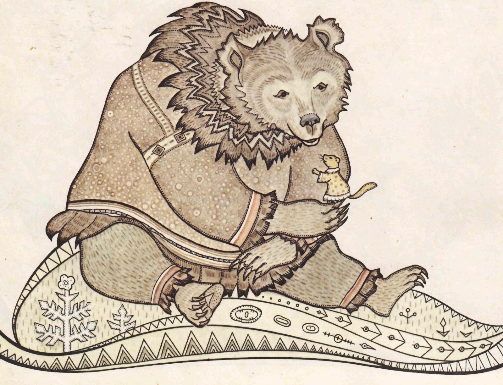— Долго же ты спишь! — сказал человек. — Я сплю только по ночам, а днём работаю: нарты чиню, пушнину добываю, рыбу подо льдом ловлю! Сколько дела я за зиму сделаю! А ты всю зиму спишь как убитый!